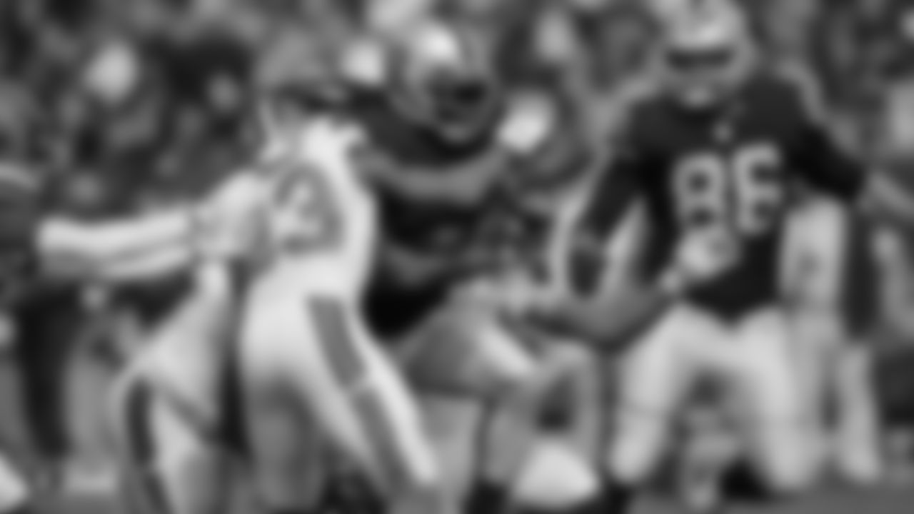 Oakland Raiders defensive end Arden Key (99) during The Oakland Raiders regular season game against the Cleveland Browns at Oakland-Alameda County Coliseum, Sunday, September 30, 2018, in Oakland, California. The Oakland Raiders won 45-42.
