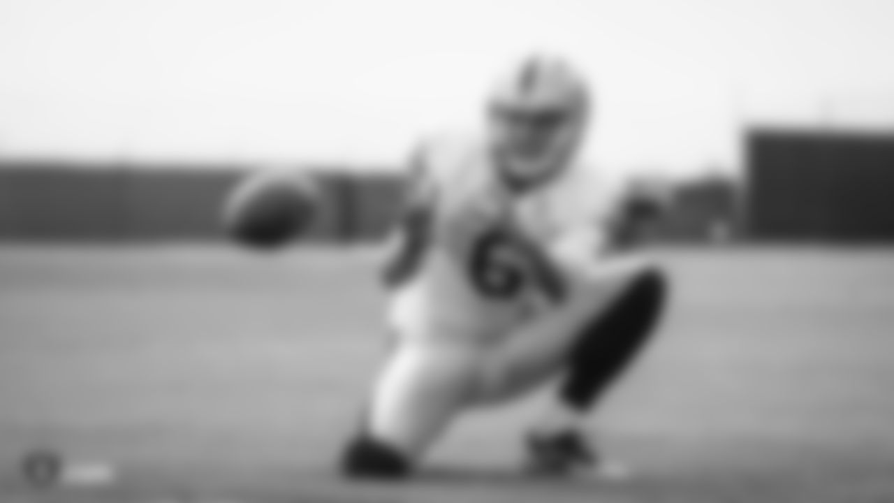 Raiders punter A.J. Cole (6) receives the snap during practice.
