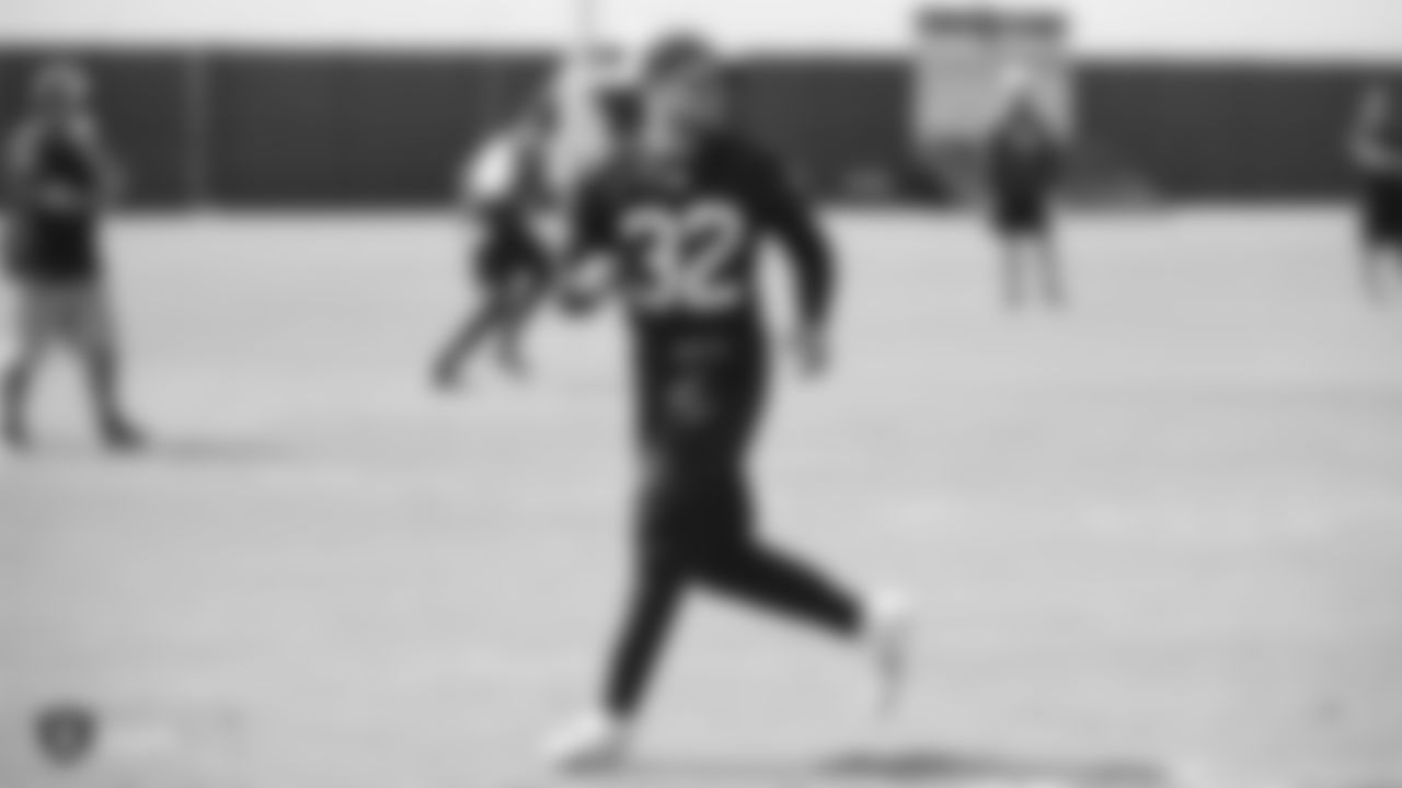 Raiders safety Dallin Leavitt (32) at an Organized Team Activity (OTA) at the Raiders Practice Facility in Alameda, Calif.