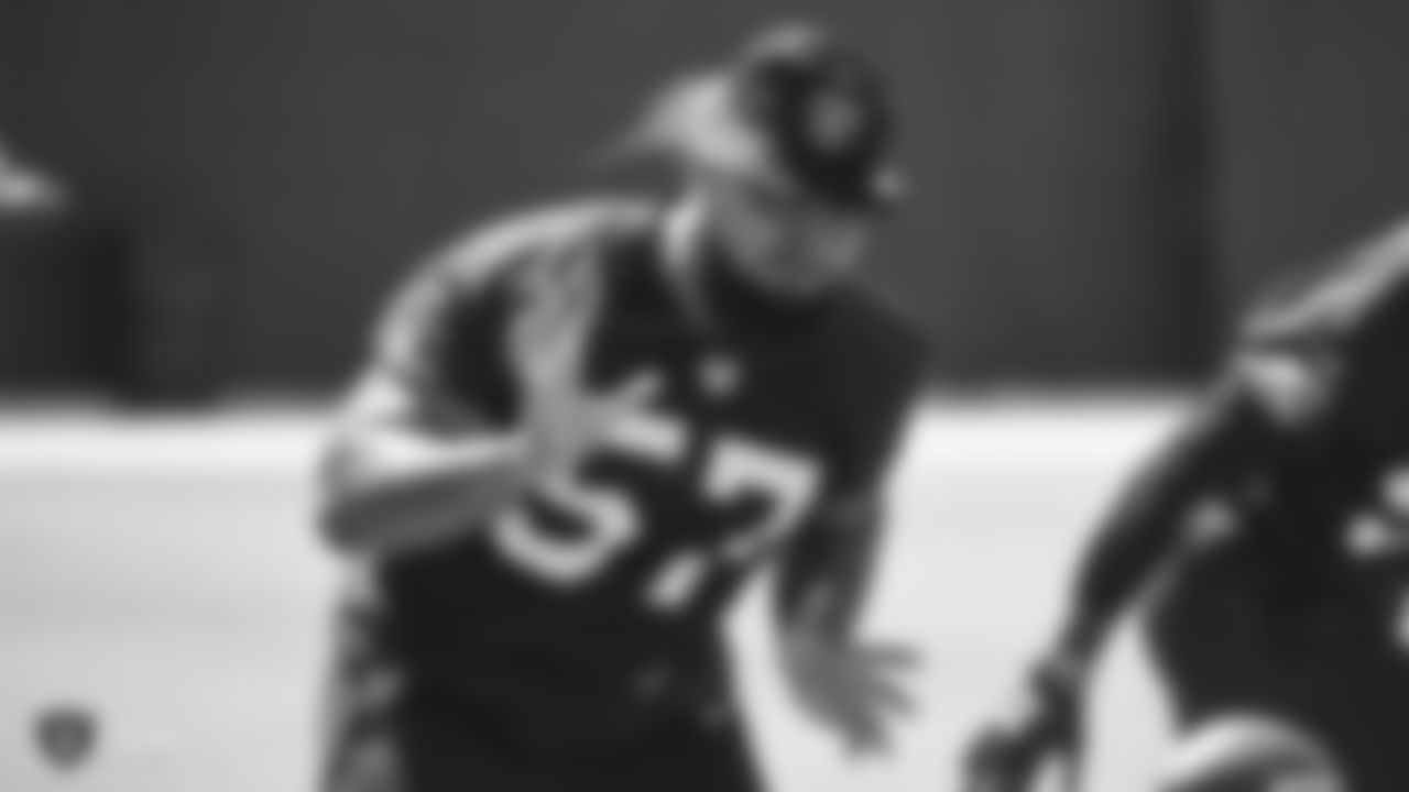 Raiders linebacker Kyle Wilber (58) at an Organized Team Activity (OTA) at the Raiders Practice Facility in Alameda, Calif.