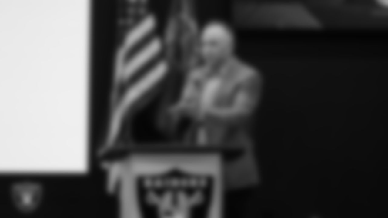 Boys and Girls Club of Southern Nevada President and CEO Andy Bischel welcomes attendees to the Boys & Girls Club's Youth of the Year program at Las Vegas Raiders Headquarters.