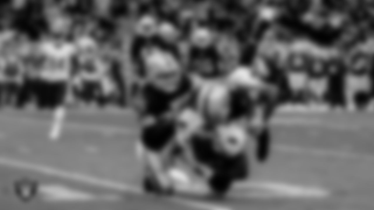 Las Vegas Raiders defensive tackle Darius Philon (96) makes a tackle during the regular season home game against the Chicago Bears.