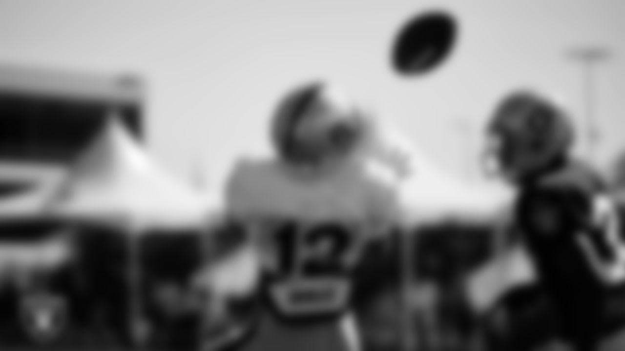 Las Vegas Raiders wide receiver Justin Hall (12) on the field for practice at 2022 Training Camp at Intermountain Healthcare Performance Center.