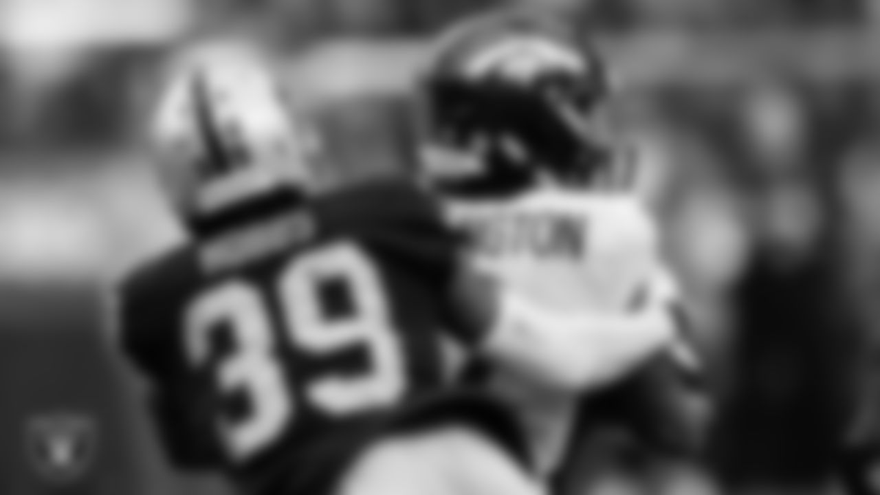 Las Vegas Raiders cornerback Nate Hobbs (39) during the regular season home game against the Denver Broncos at Allegiant Stadium.