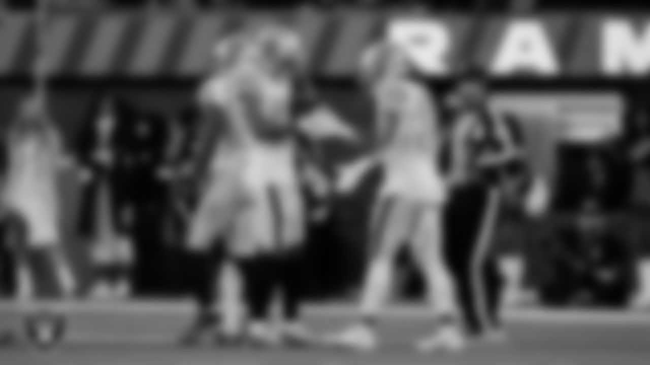 View photos from the Raiders' Week 14 matchup against the Los Angeles Rams at SoFi Stadium.