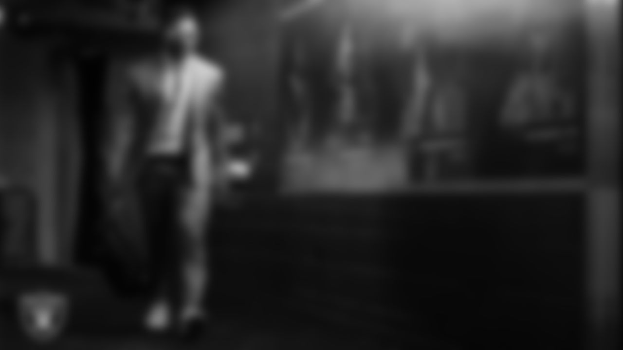 Las Vegas Raiders defensive lineman Adam Butler (69) arrives to the regular season home game against the New England Patriots at Allegiant Stadium.