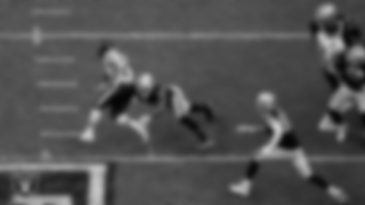 The Las Vegas Raiders defense makes a tackle during the regular season home game against the Chicago Bears.