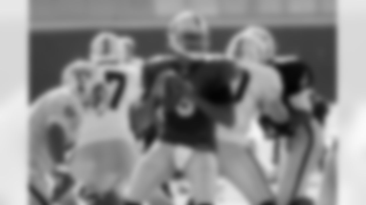 Assistant offensive line coach Steve Wisniewski coaches tackles Jared Veldheer and Joe Barskdale.