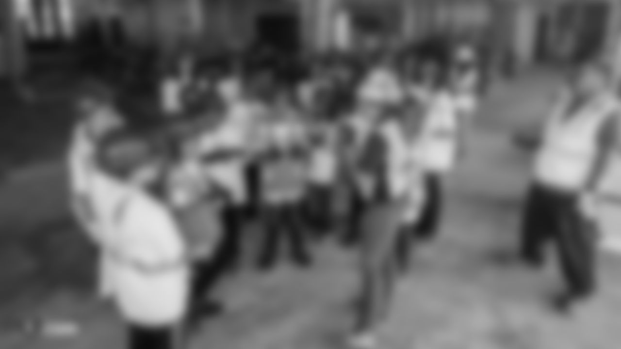 The Nate Mack Elementary School robotics team walks during the stadium during a tour of Allegiant Stadium.