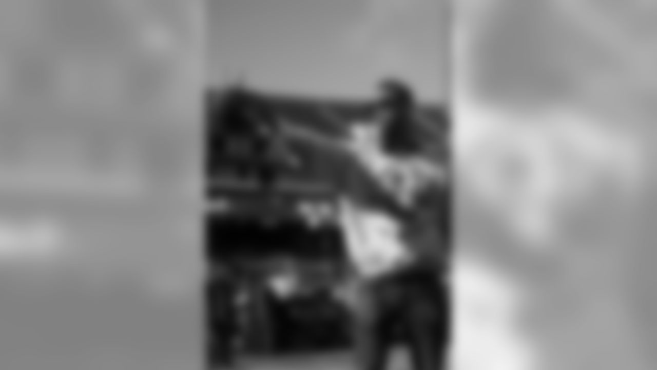 Raiders Legend Raymond Chester lights the torch in honor of and tribute to Al Davis.