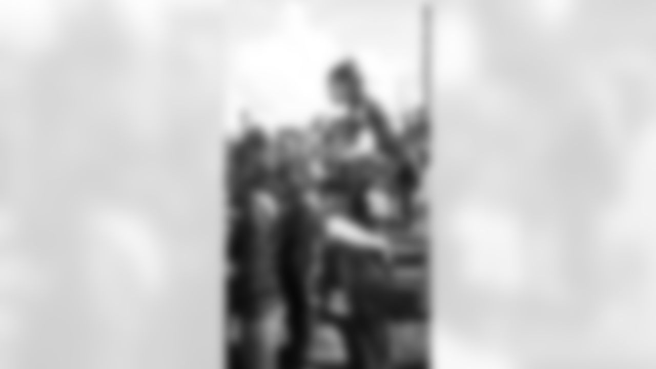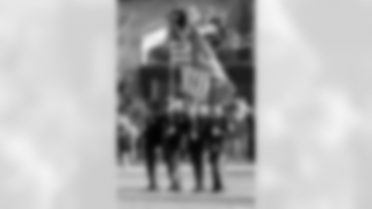 WR Denarius Moore runs through the tunnel of servicemen and women during player intros.