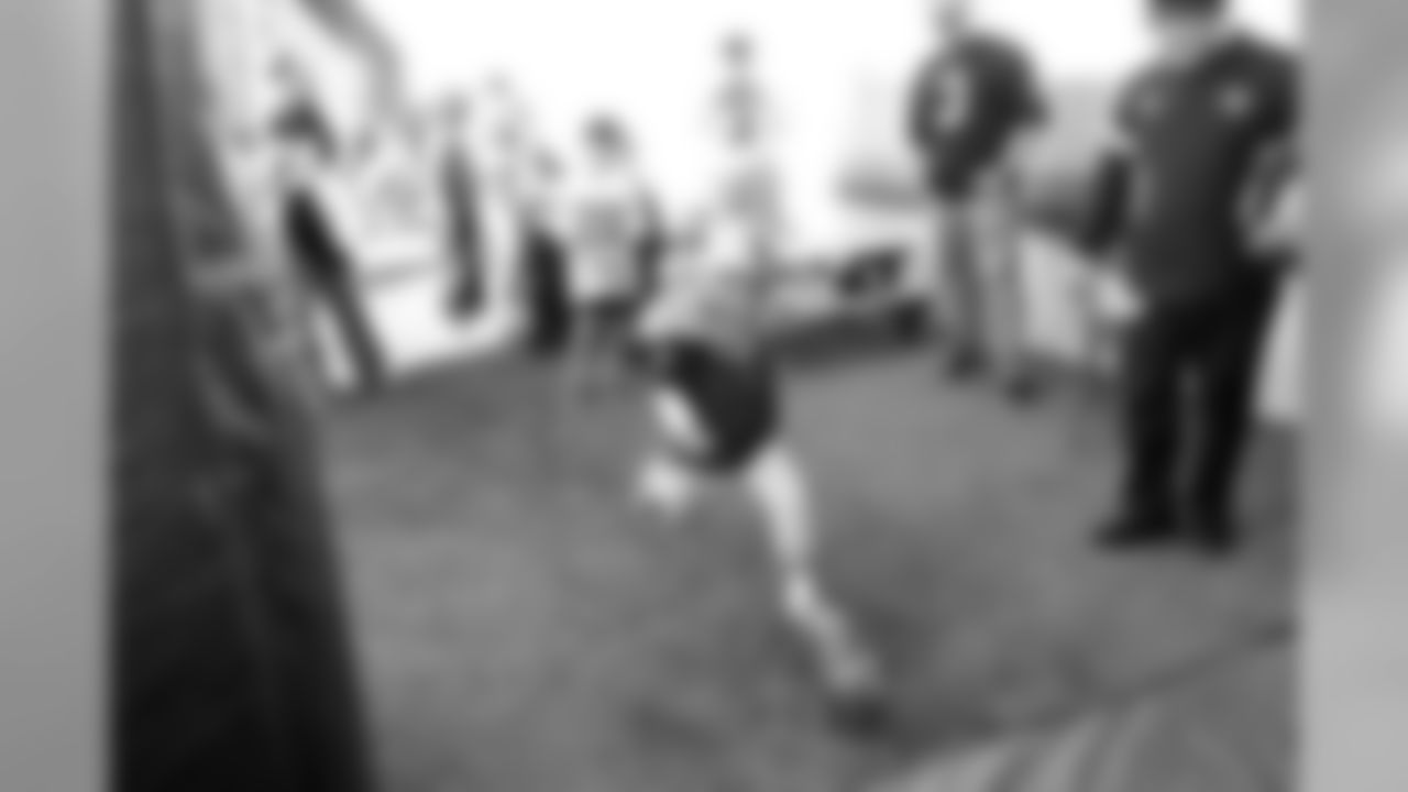 Raiders Legend George Atkinson smiles for the camera with a fan.