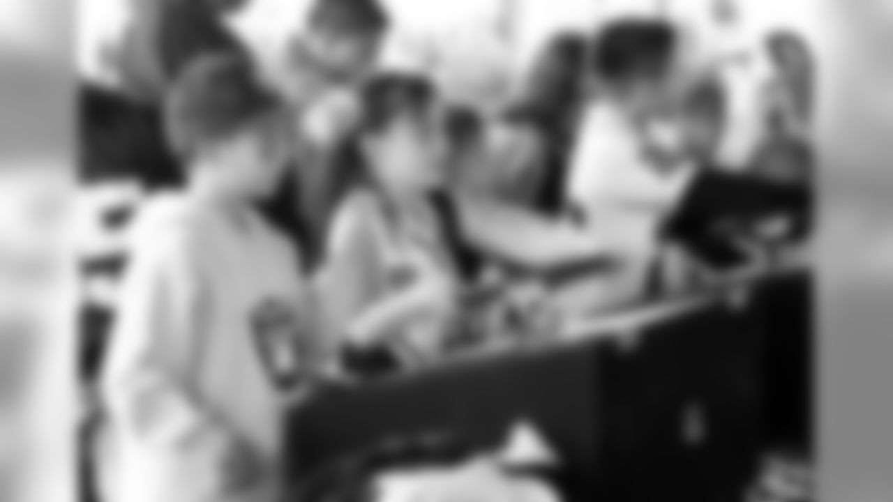 Raiders Legends Daryle Lamonica and Clem Daniels sign autographs in Raiderville.