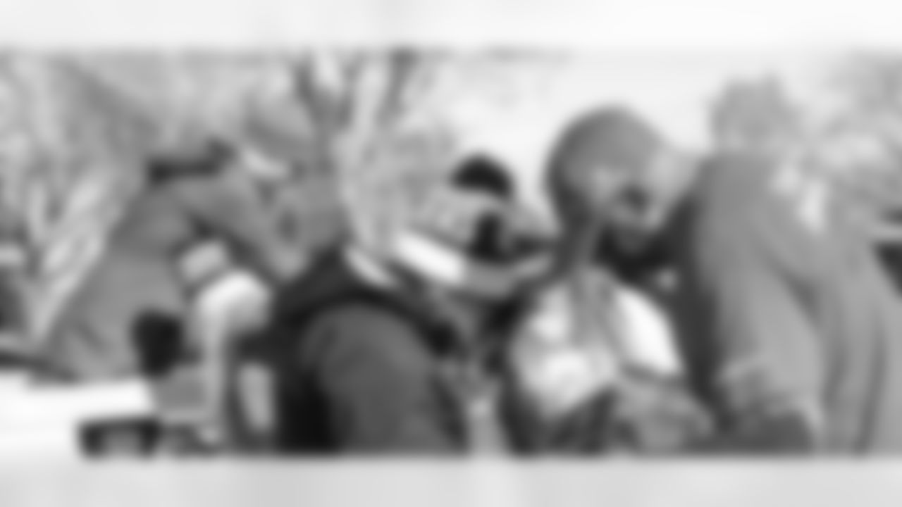 Raiders RB George Atkinson III, members of the Raiders front office staff and family helped build a playground in San Jose, Calif.