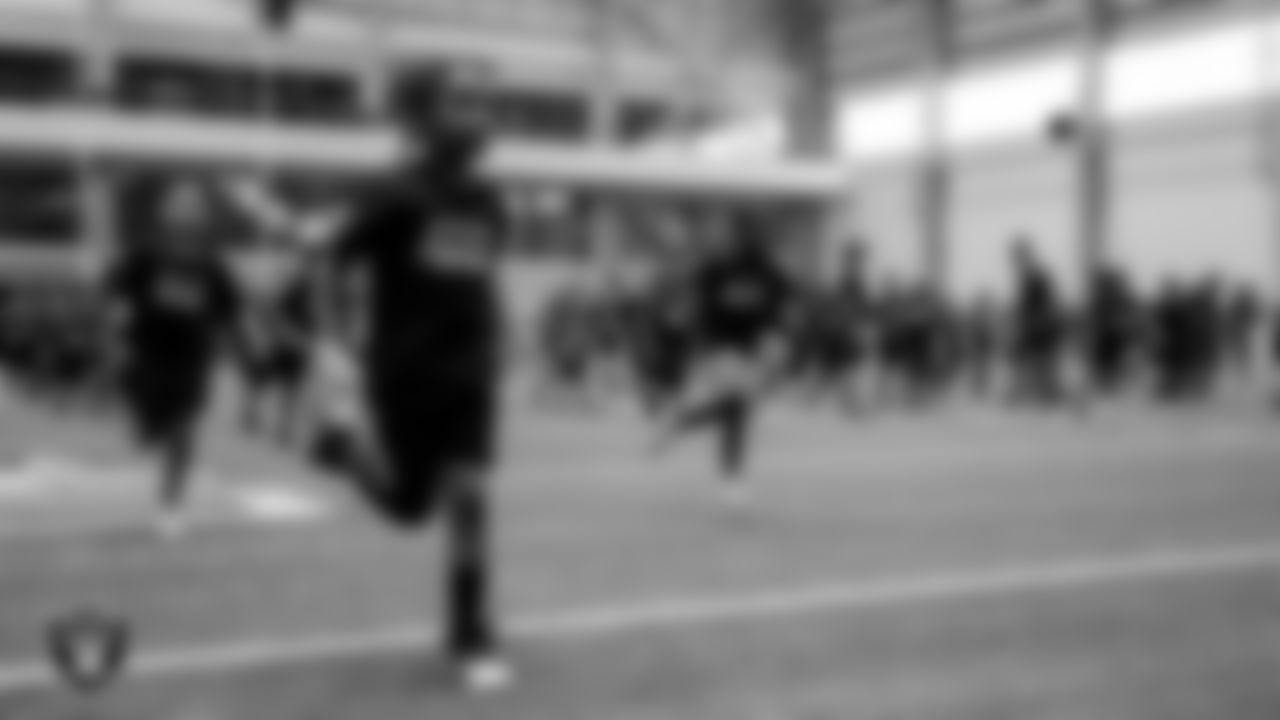 An athlete warms up during the Raiders Play Football Skills Camp at Intermountain Health Performance Center.
