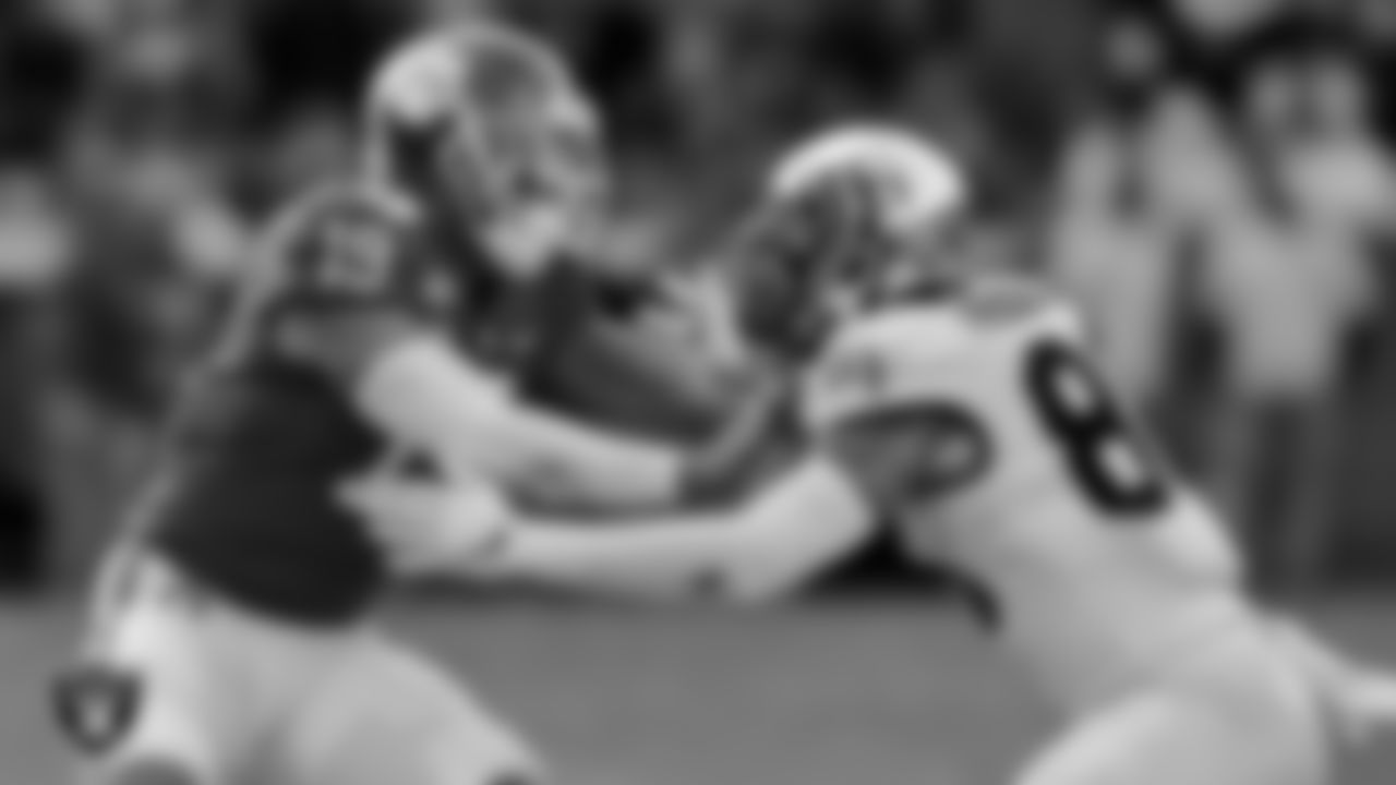 Alston joined the Raiders after a year in St. Louis. He wore No. 94 in 2007, and No. 55 from 2008-09. He played in 36 total games with eight starts, forced two fumbles and recorded 32 solo tackles. He carried the ball once for 22 yards on a fake punt in 2008.