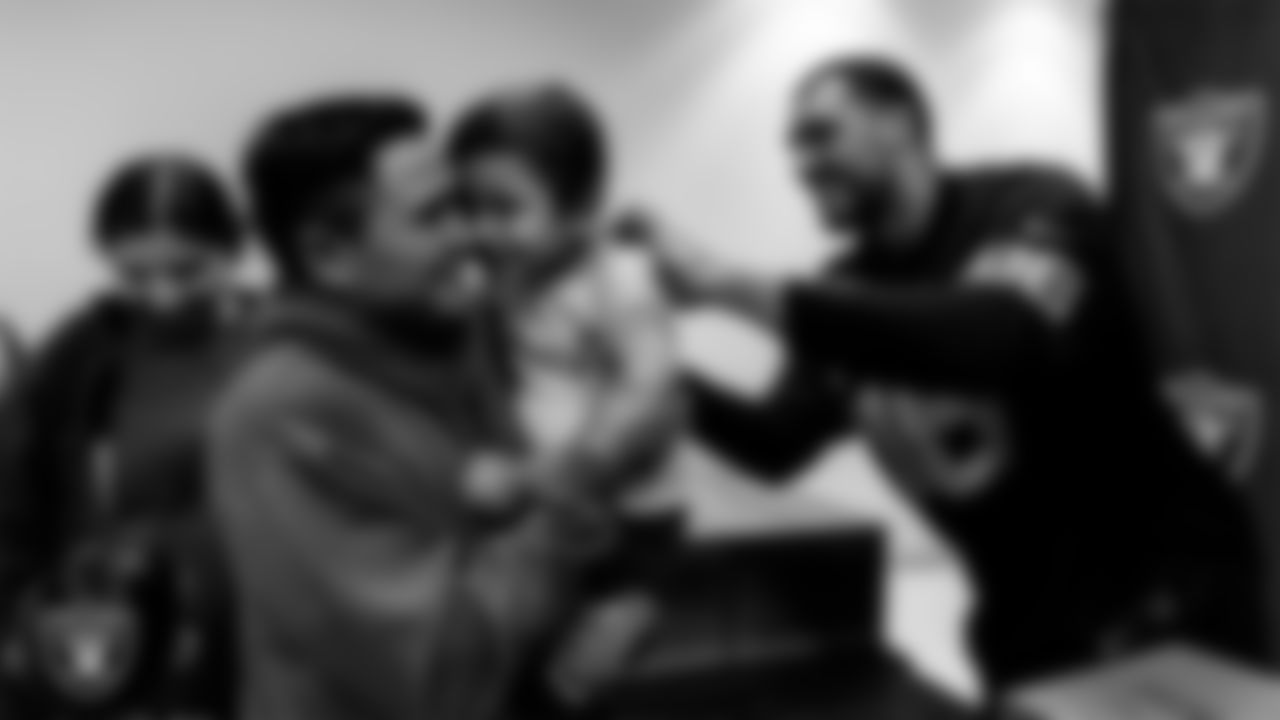 Las Vegas Raiders defensive end Tashawn Bower and cornerback Nate Hobbs passed out Thanksgiving meals, donated by Raiders players, to 30 families at Pearson Community Center.