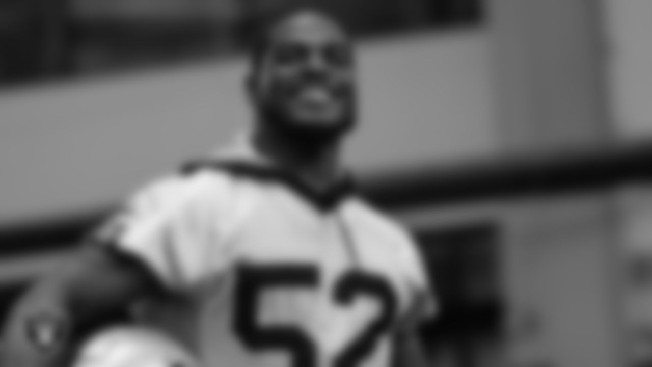Las Vegas Raiders defensive end Gerri Green (56) during practice at Intermountain Healthcare Performance Center.