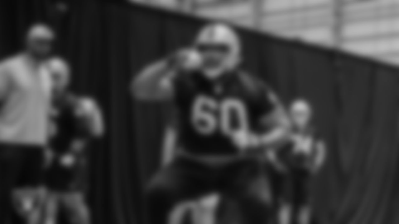 Las Vegas Raiders guard Jordan Simmons (60) during practice at Intermountain Healthcare Performance Center.