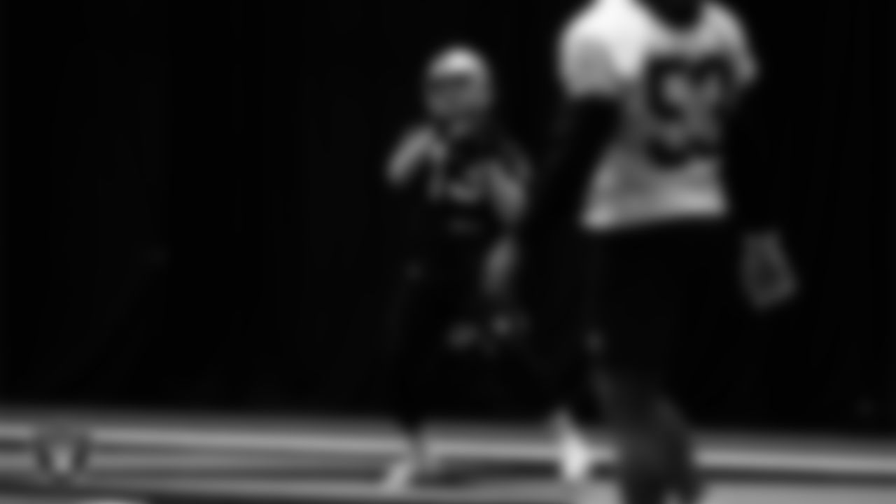 Las Vegas Raiders linebacker Denzel Perryman (52) during practice at Intermountain Healthcare Performance Center.