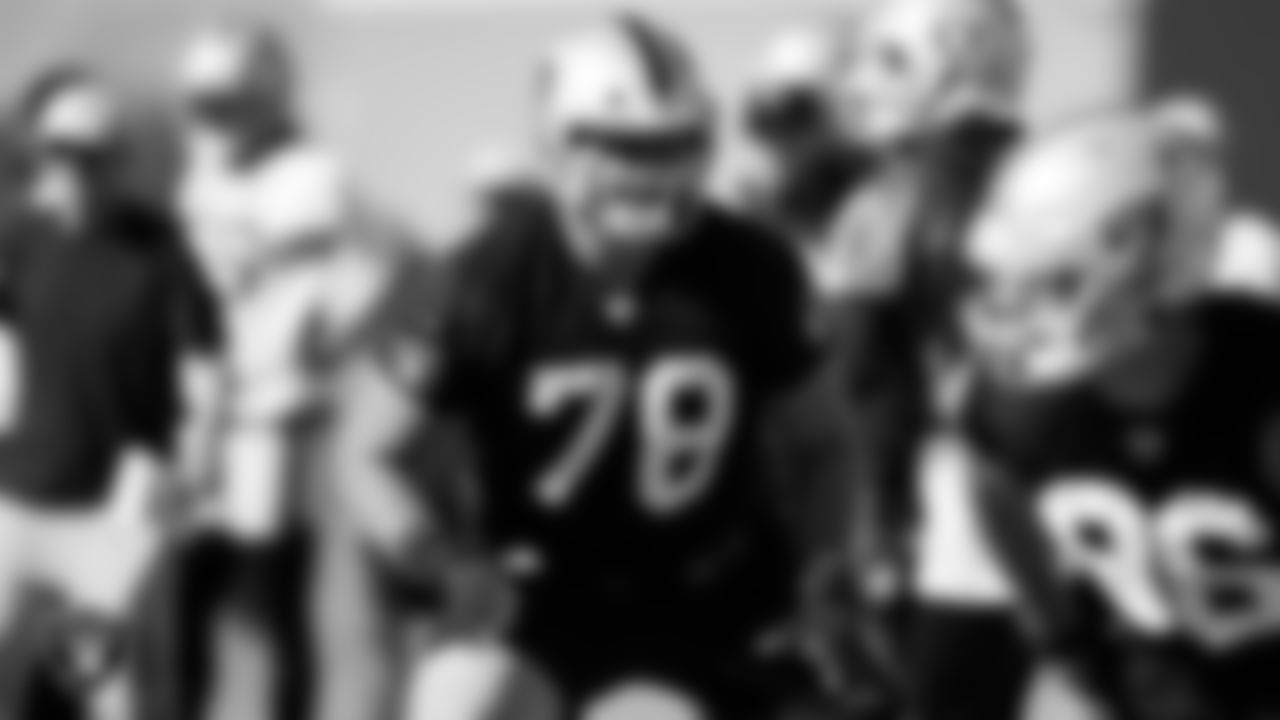 Las Vegas Raiders tackle Jackson Barton (78) during practice at Intermountain Healthcare Performance Center.