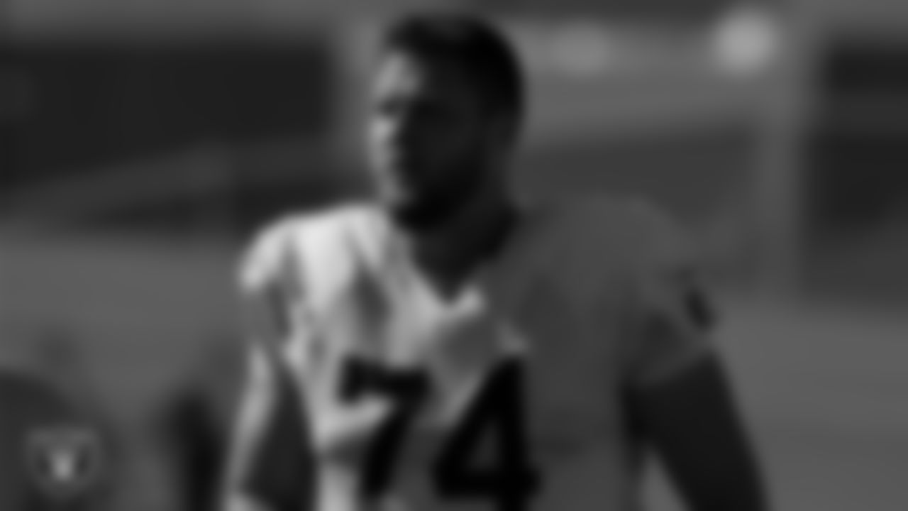 Las Vegas Raiders tackle Kolton Miller (74) during practice at Intermountain Healthcare Performance Center.