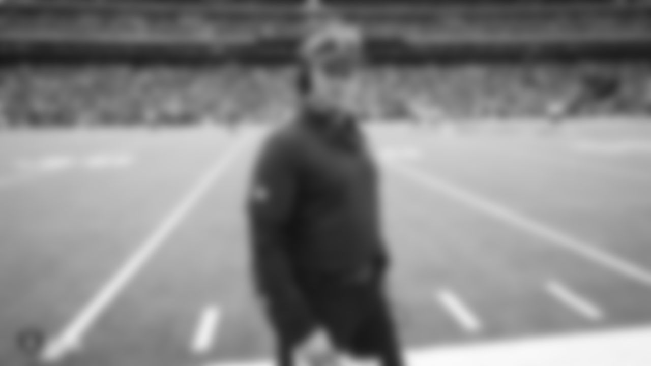 Raiders running backs coach Kirby Wilson on the field before the regular season game against the Houston Texans at NRG Stadium.