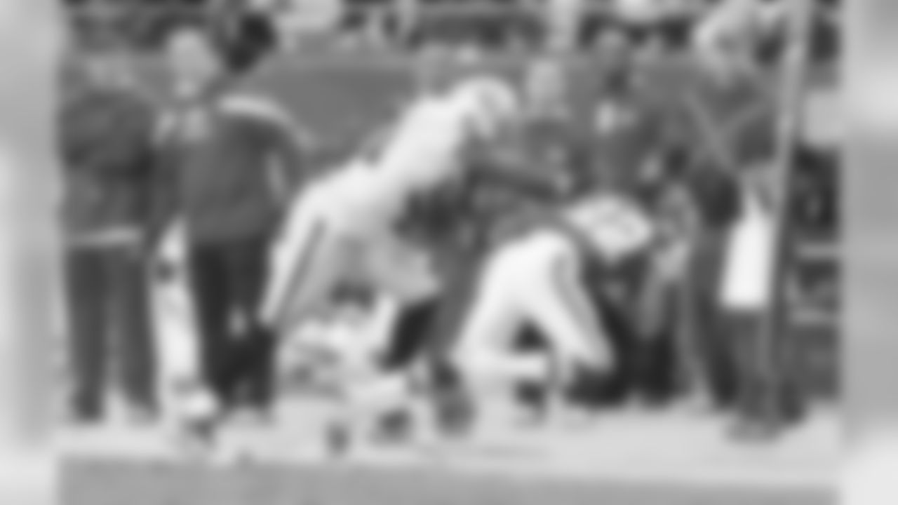 The Raiders stop RB Jackie Battle short of the first down.