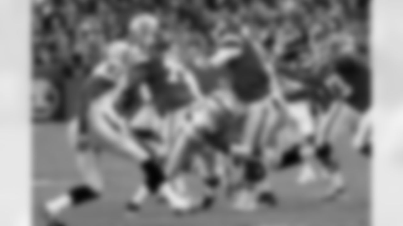 DE Lamarr Houston gets some air to block the passing lane and DT Tommy Kelly gets in the QB's face.