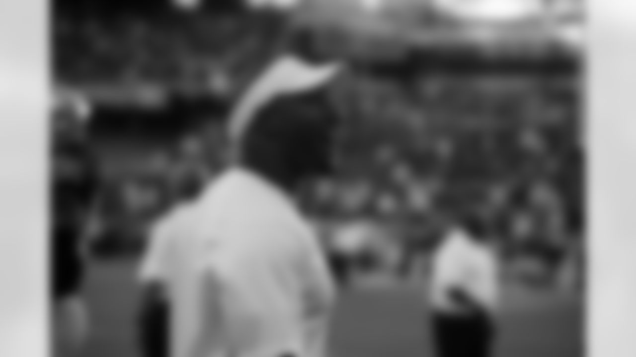 Offensive line coach Frank Pollack works with his guys after an offensive series.