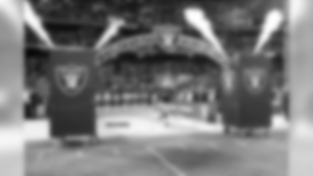 The Raiders wait to take the field for the start of their match-up with the Chargers.