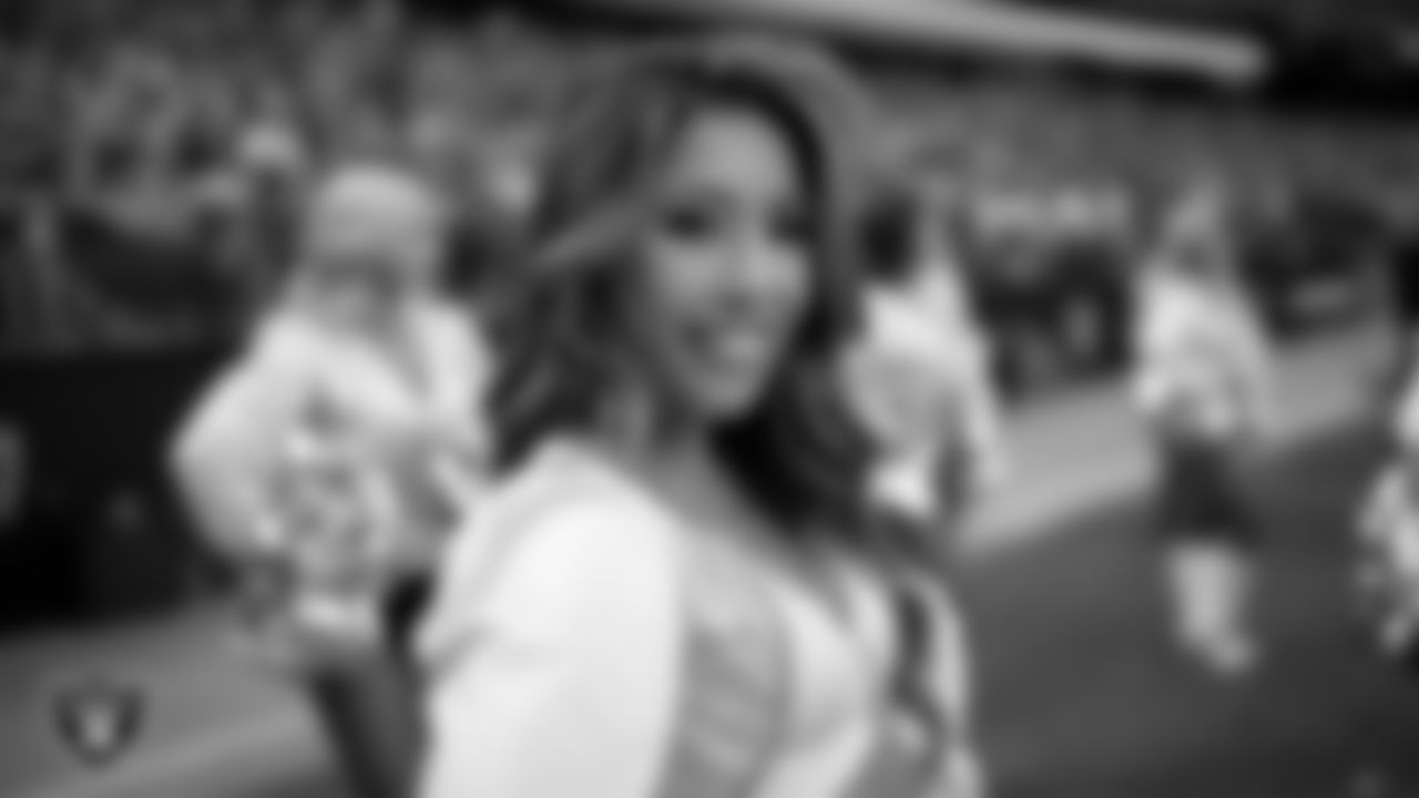 Raiderette Gabby L. on the sidelines during the regular season home game against the Miami Dolphins.