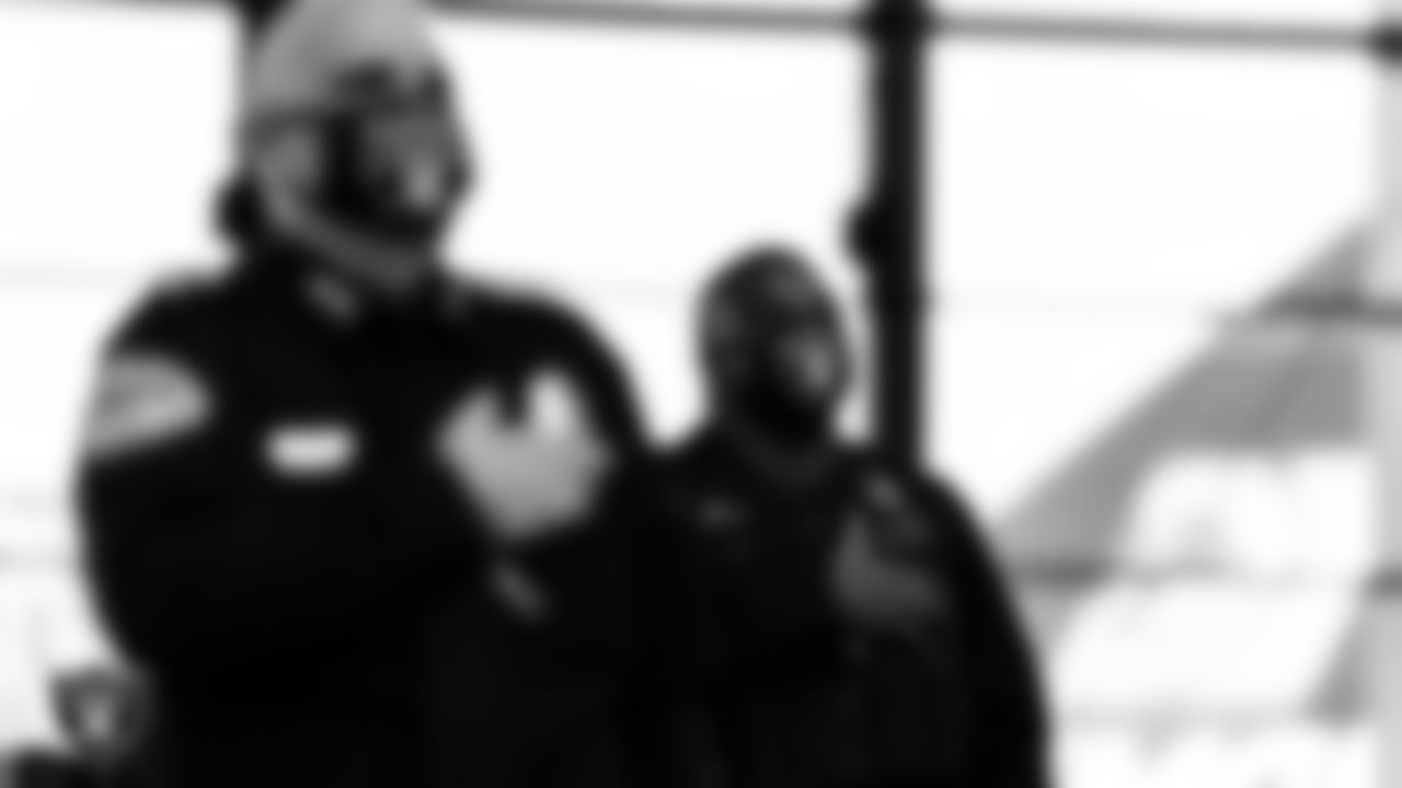 A member of the Henderson Police Department during the national anthem before the Las Vegas Raiders regular season home game against the Indianapolis Colts.