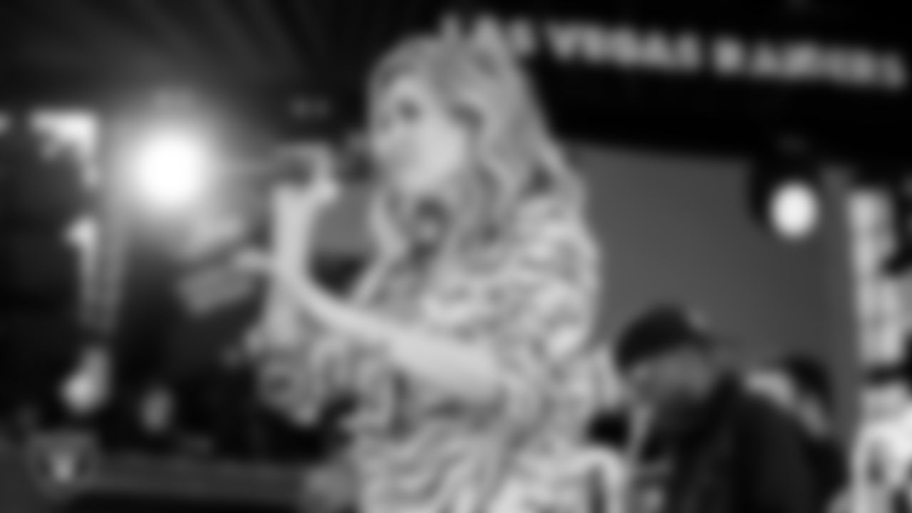 Singer, songwriter and author Rachel Platten and the Raiders House Band perform before the Las Vegas Raiders' regular season home game against the Houston Texans at Allegiant Stadium.
