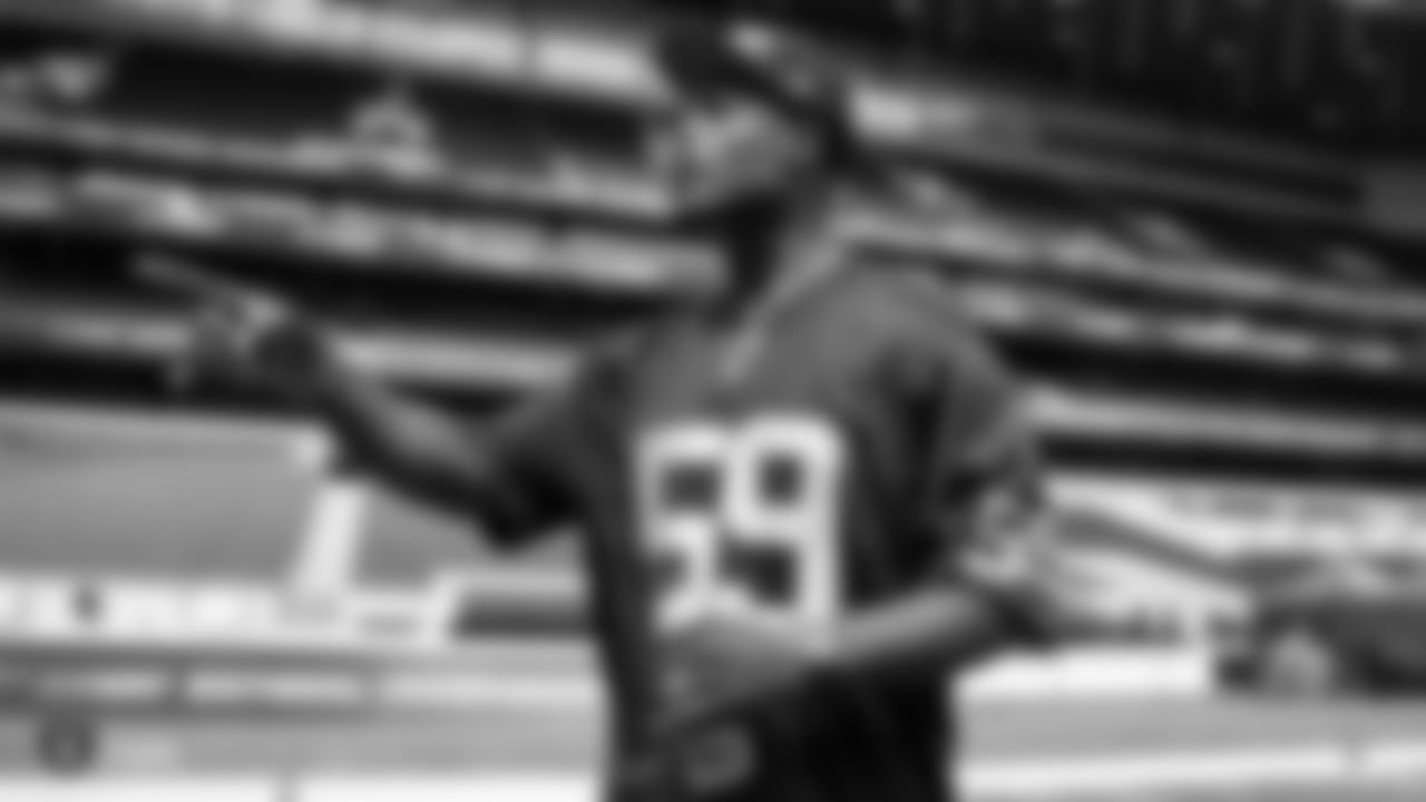 Raiders linebacker Tahir Whitehead (59) guest stars on NFL UK Live.