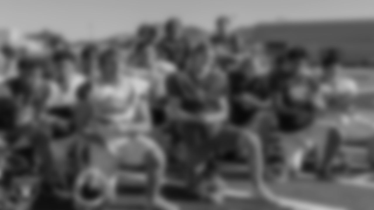Las Vegas Raiders alumnus Leo Gray talks to the Green Valley High School football team.