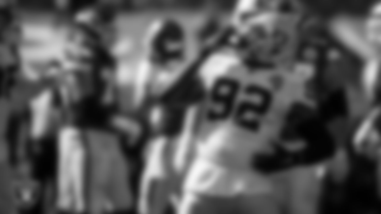 Las Vegas Raiders defensive end Chris Smith (92) celebrates after sacking the quarterback during the regular season away game against the Kansas City Chiefs.