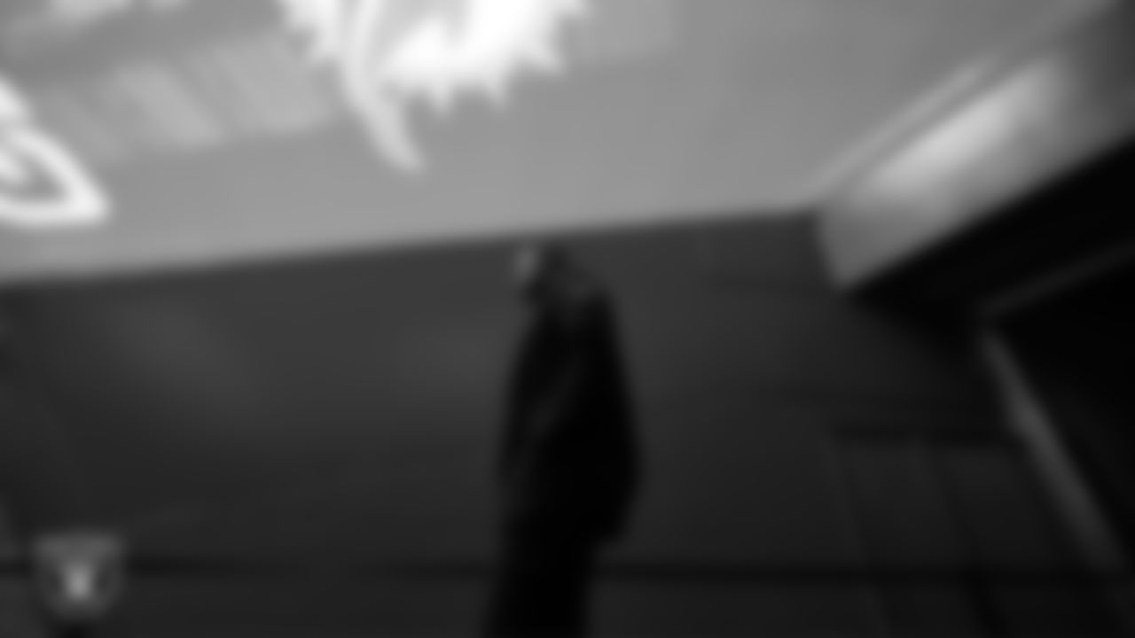 Las Vegas Raiders defensive coordinator Patrick Graham walks down the tunnel before the regular season away game against the Miami Dolphins at Hard Rock Stadium.