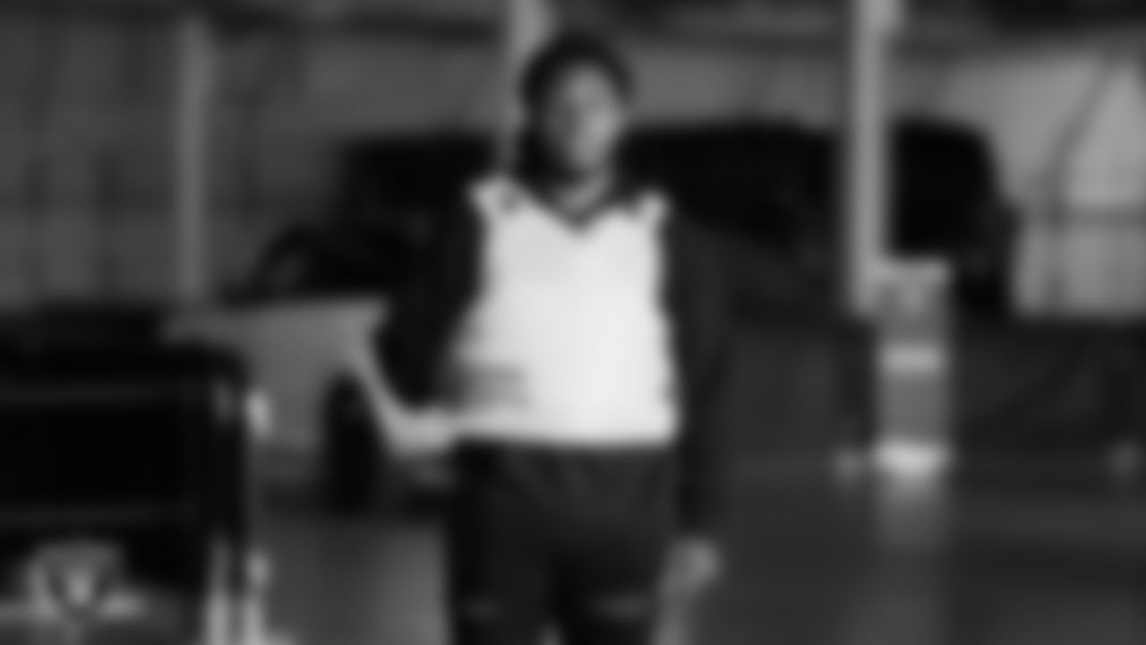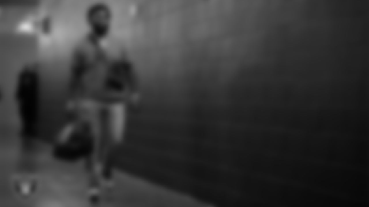 Las Vegas Raiders defensive tackle Johnathan Hankins (90) arrives to the regular season away game against the Los Angeles Chargers at SoFi Stadium.
