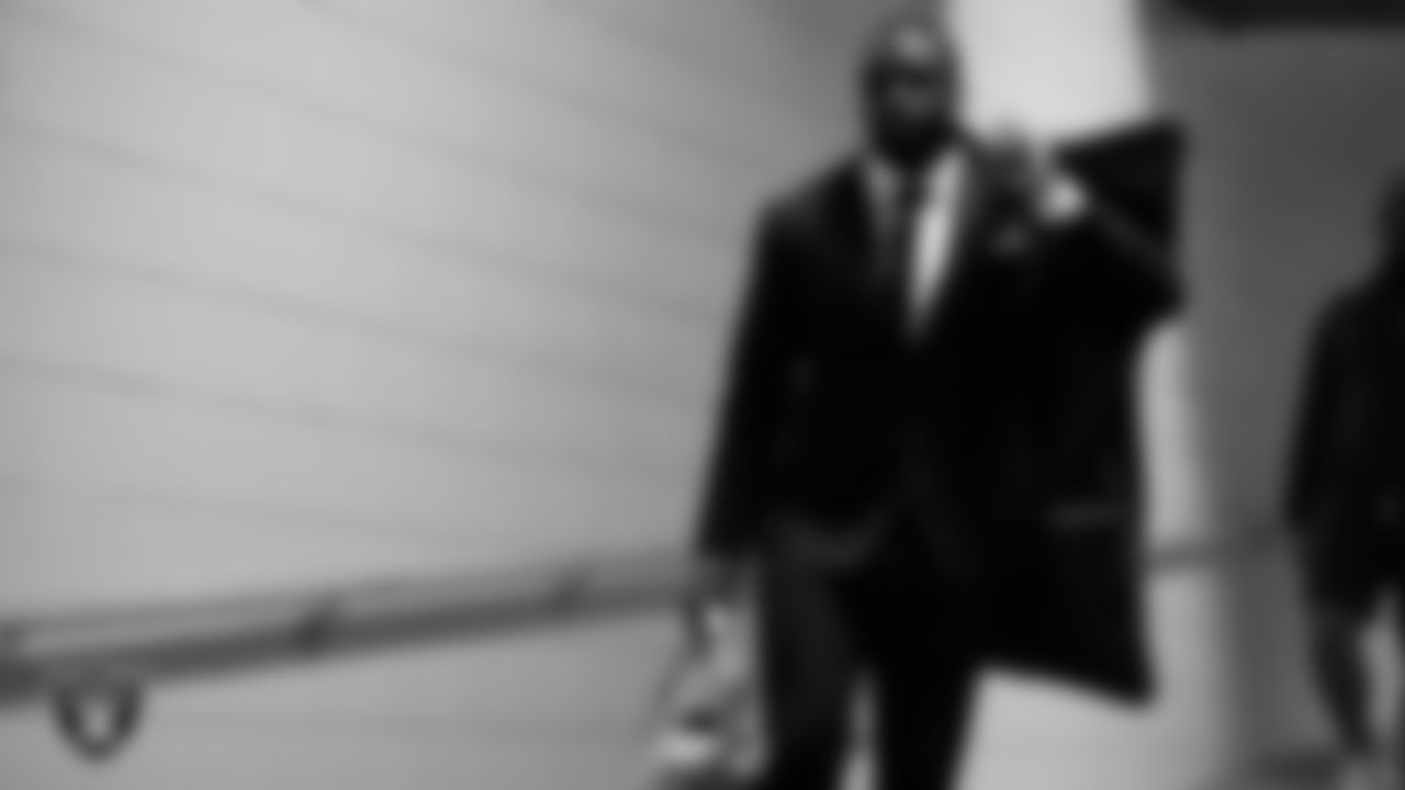 Las Vegas Raiders defensive tackle Matthew Butler (94) arrives to the regular season home game against the Kansas City Chiefs at Allegiant Stadium.
