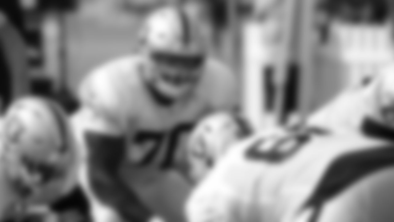 Oakland Raiders offensive guard Kelechi Osemele (70) on the field for practice at 2018 Training Camp at The Oakland Raiders Napa Valley Training Complex, Thursday, August 2, 2018, in Napa, California.