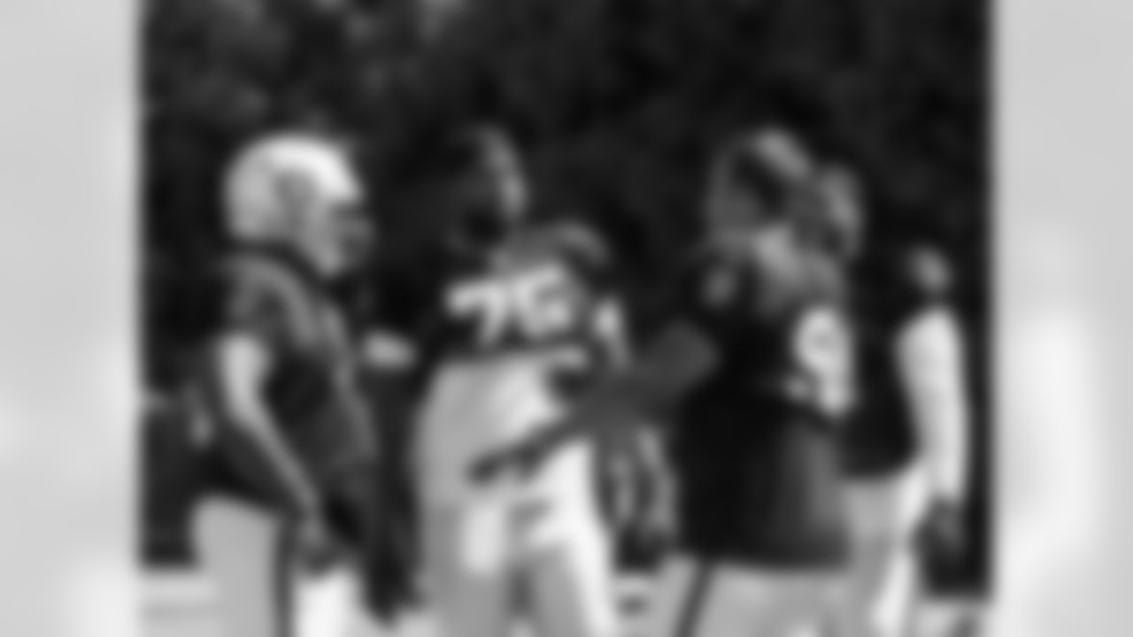 Oakland Raiders players and coaches on the field for the eighth day of training camp.