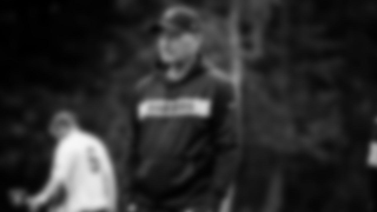Raiders General Manager Mike Mayock stands on the field during a walk through.