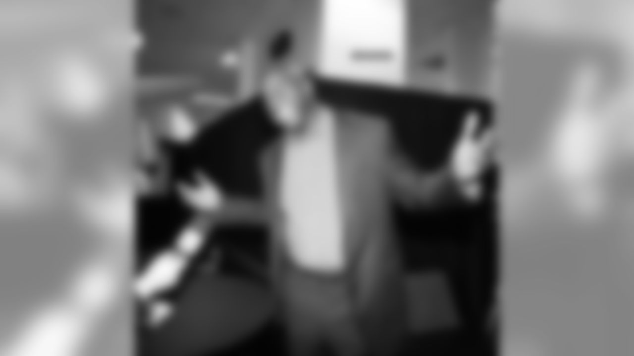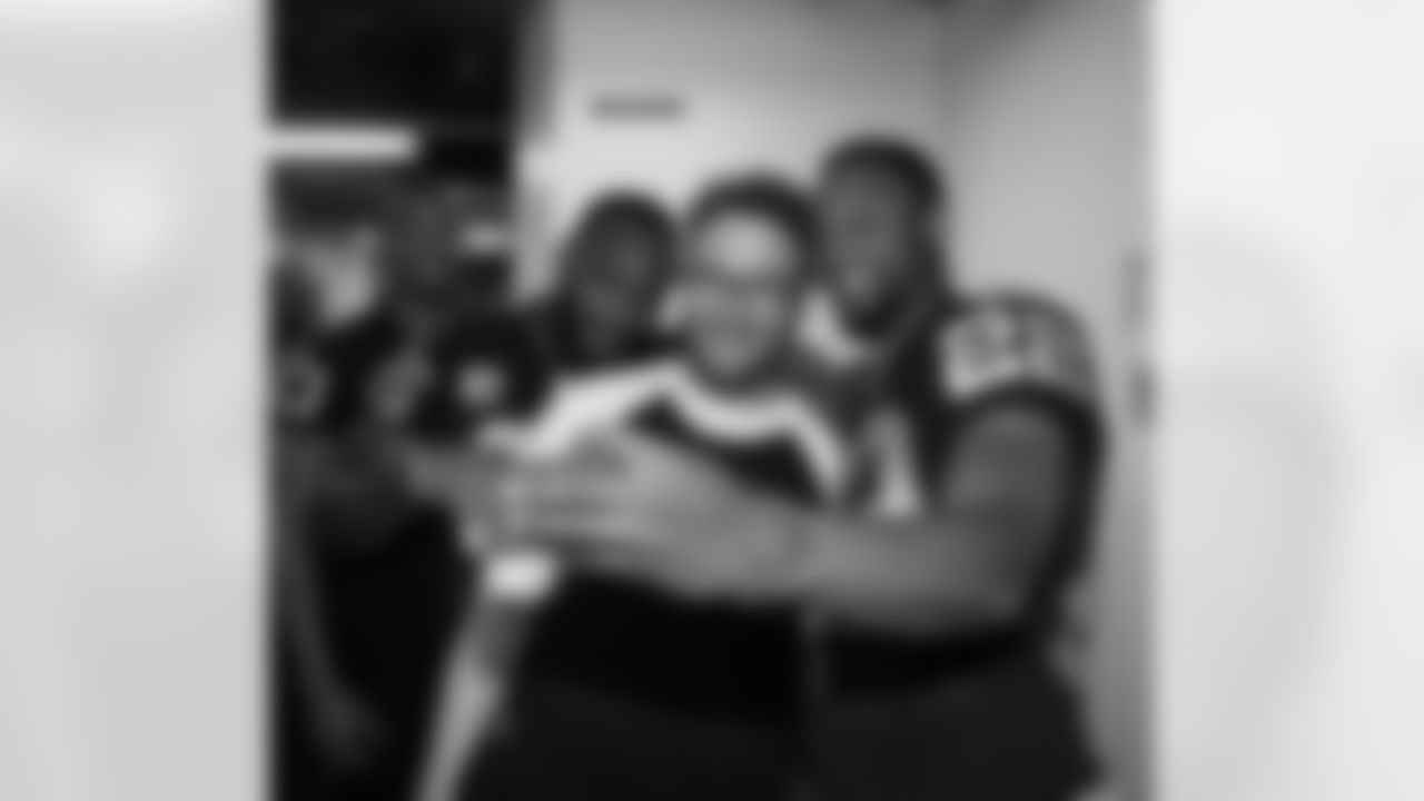 The Raiders spend time with long-time fan of the Silver and Black Magic Johnson.