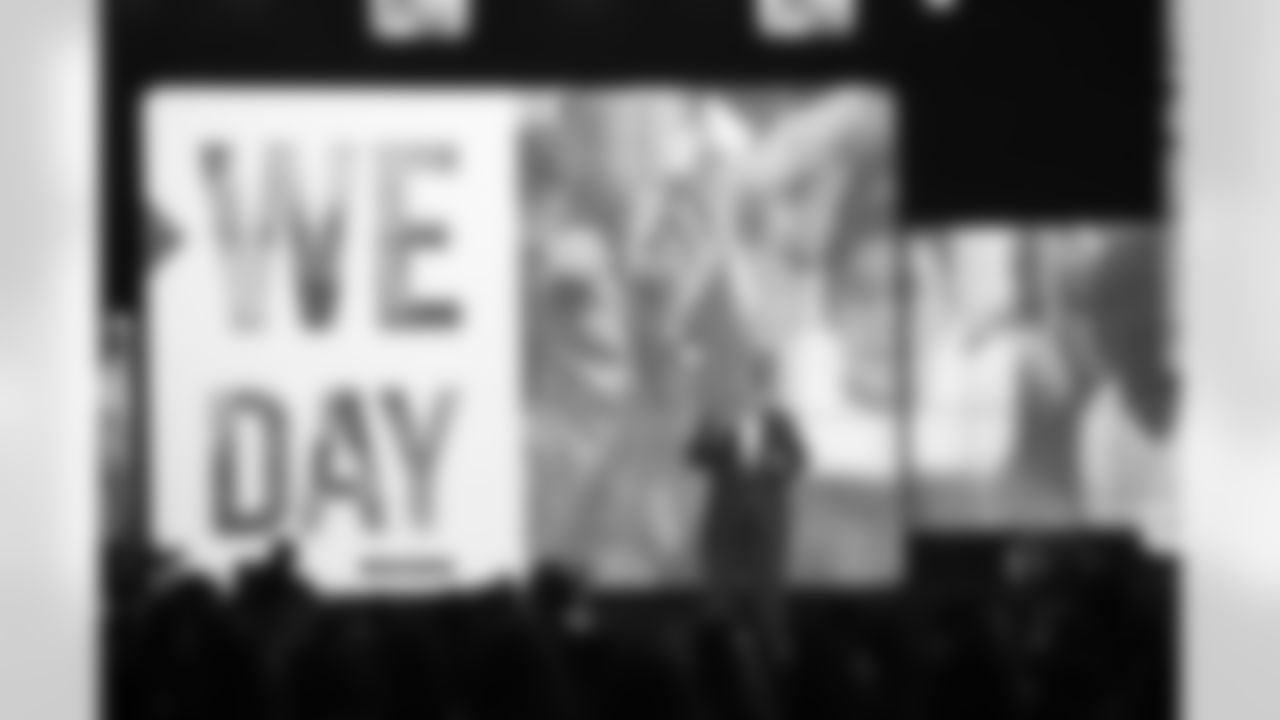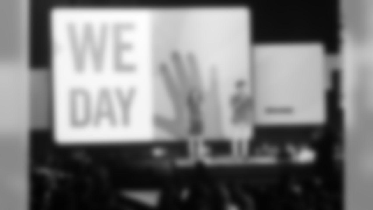 The Raiders and 49er take the stage to fire up the students at We Day California.