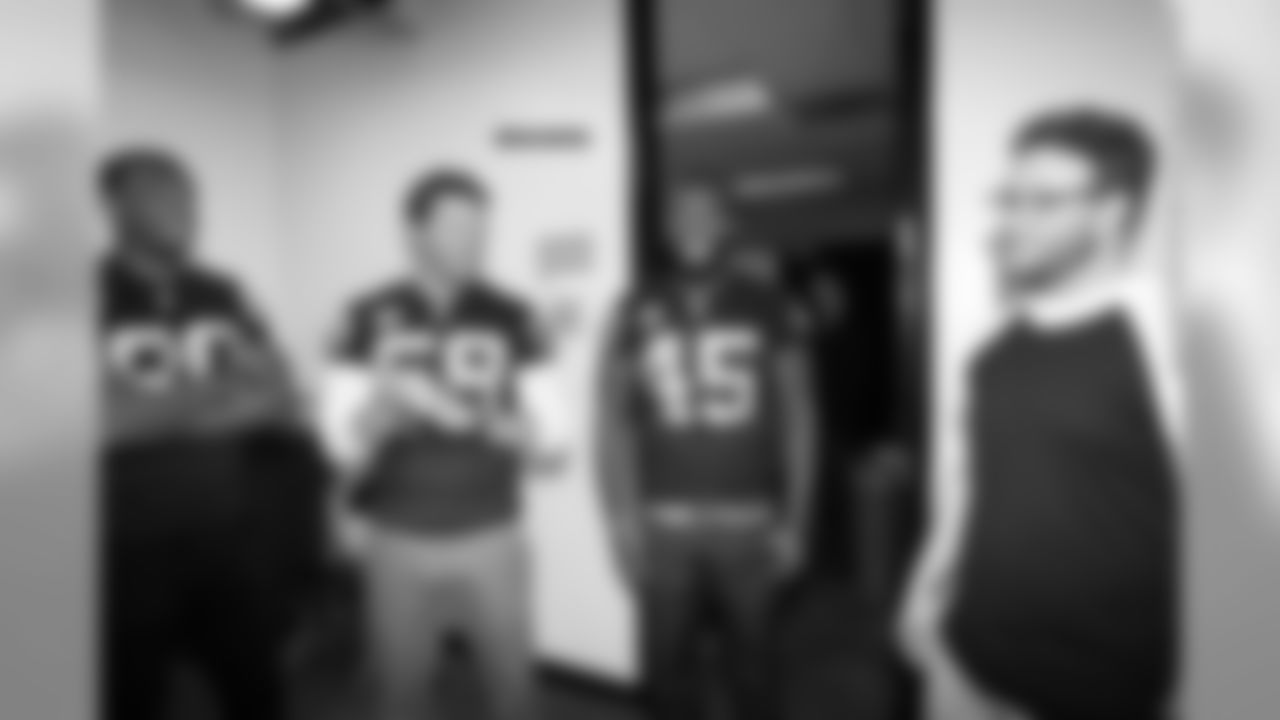 CB Taiwan Jones, LS Jon Condo and FB Marcel Reece sign autographs for the We Day participants.