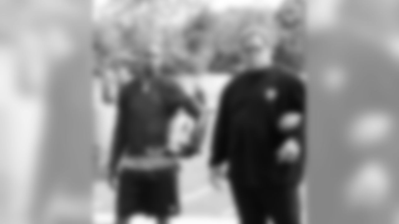 Head Coach Dennis Allen talking to DB Charles Woodson
