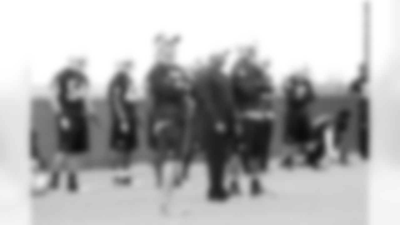WR coach Ted Gilmore instructs rookie WRs Sam McGuffie and Conner Vernon