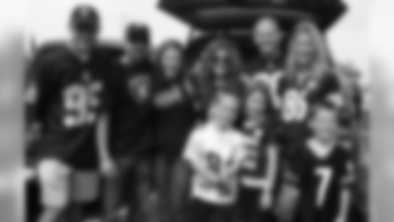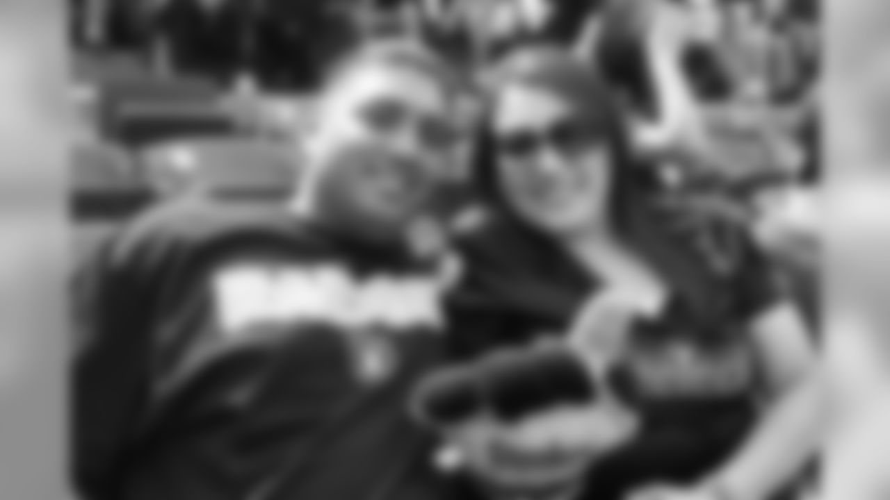 Raiders and Steelers fans displaying good sportsmanship at O.co Coliseum.