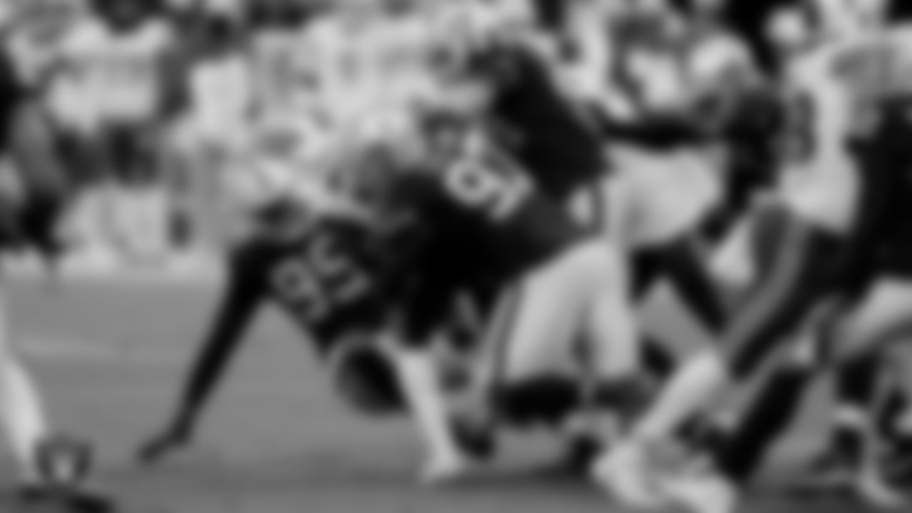 Las Vegas Raiders defensive end Arden Key (99) during the regular season game against the Buffalo Bills at Allegiant Stadium.